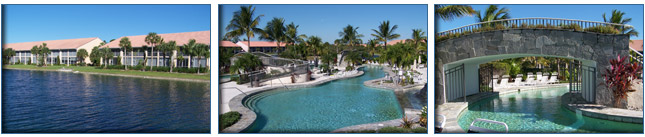Falling Waters Beach Resort is located on Collier Boulevard (CR 951) near the intersection of Tamiami Trail (US 41) in Naples, Florida. Convenient to both Marco Island and downtown Naples with ample shopping and dining available. All 430 units are 2 bedrooms, 2 baths with over 1,300 square feet under air, a large covered lanai, and a detached one car garage. The primary difference between the 2nd floor units and the first floor are the vaulted ceilings and wider views obtained from the 2nd floor residences. Cascading waterfalls mark the entrance. Every unit has spectacular water views from the large lanai, with towering fountains, a 600 foot lazy river pool, a lap pool, large clubhouse with a dance floor, library, big screen TV and kitchen, brick paver walkways & parking areas, and a shuffleboard court, tennis/pickleball courts and a bocce ball court.